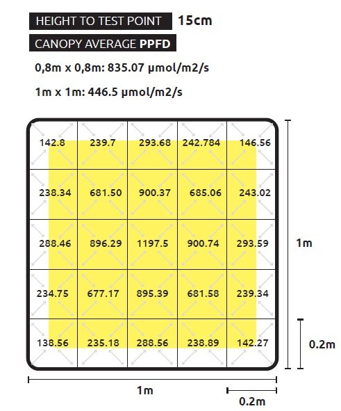 LED dizimi, kısa mesafede eşit bir ışık yayılımı oluşturarak sıcak noktalar ve aşırı ısı olmadan ışığın bitkinin yapraklarına iyi bir şekilde nüfuz etmesini sağlar. Yenilikçi ısı emici ve pasif soğutma kullanımı, fan ihtiyacını ortadan kaldırmış, gürültü çıkışını azaltmış ve hareketli parçası olmadığı için lambanın ömrünü önemli ölçüde artırmıştır.